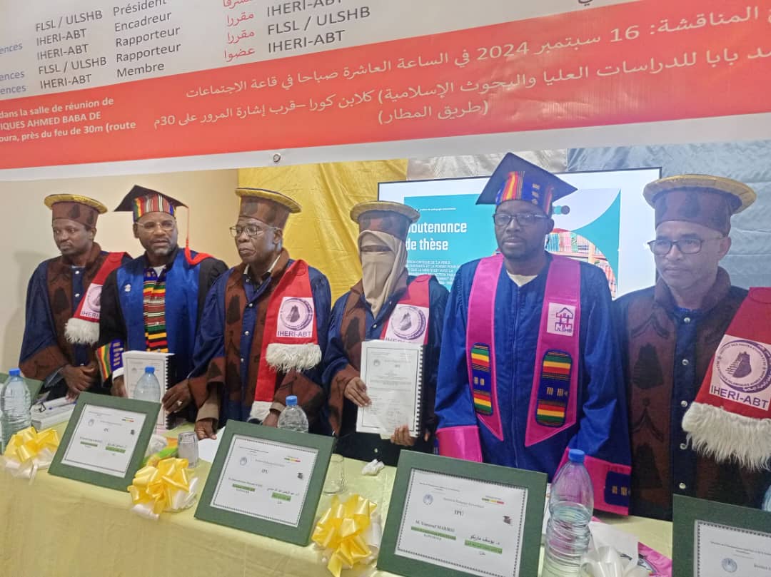 Le lundi 16 septembre 2024, s’est déroulée la soutenance de thèse de l’étudiante Alhamziyatou Samba Maïga à l’Institut des Hautes Etudes et de Recherches Islamiques Ahmed Baba de Tombouctou (IHERI-ABT), dans le cadre de son doctorat en Sciences de l’Éducation. Le thème de sa thèse portait sur l’édition critique de l’œuvre d’Ahmed Boularaf al-Takni (1864-1955) intitulée: